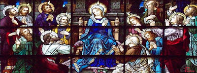 of St Ignatius before heading "outside the walls" to the Basilica of St Lawrence. Little did I know that I would be making more than one stop along the way! But the day was mine and wide open, so I was ready to follow any hint of inspiration or interest. The first one came quickly: just beyond the Campo dei Fiori and its bustling market, the tiny chapel of St Bridget was open. A placard announced that this was where St Bridget of Sweden had lived for 19 years, and where she had died. A Bridgettine sister was keeping watch before the Blessed Sacrament, exposed on the altar in a simple monstrance. To the left, a magnificent painting of the royal saint and her saintly daughter Catherine hung over a side altar which features an unusual reliquary--one topped by the distinctive headpiece worn even now by the Bridgettine sisters over their veil. Respect for Our Lord (and, truth to tell, for the elderly nun at prayer) kept me from documenting this with my smartphone; others were not so...pious, so I have a picture for you.